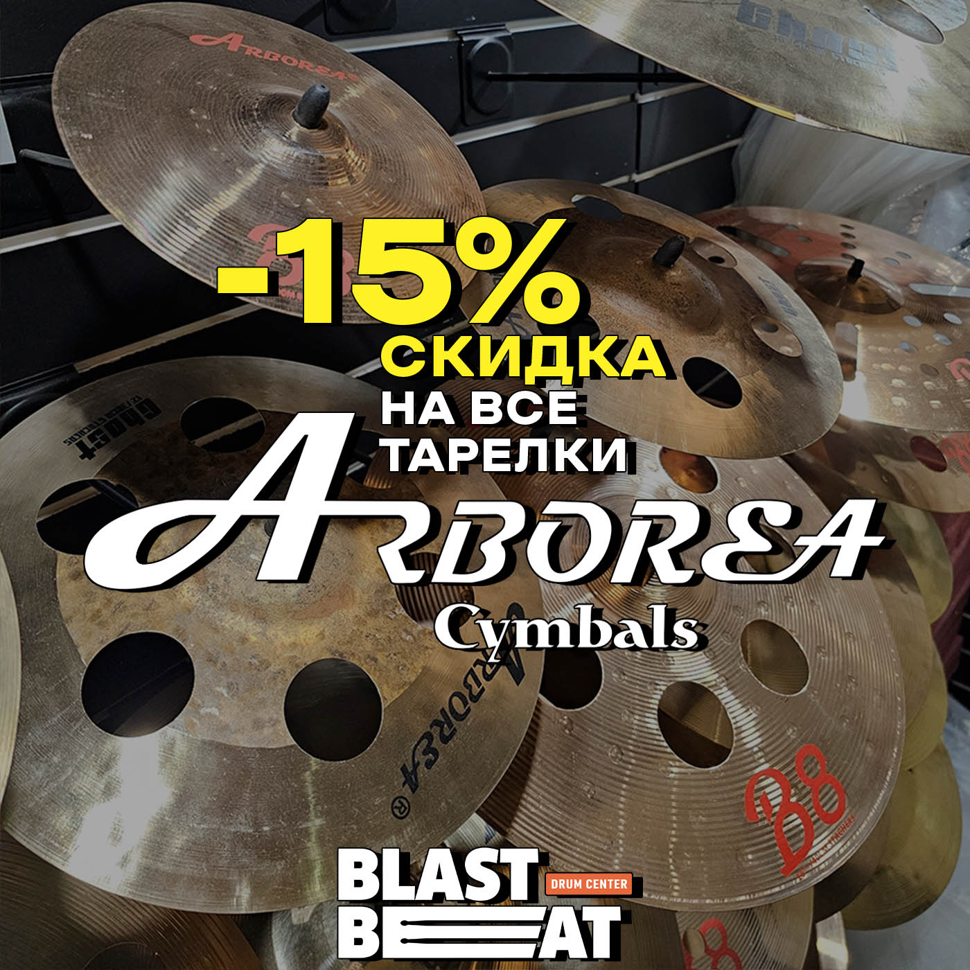 Ликвидация остатков. На латунные и бронзовые тарелки старейшего музыкального китайского бренда Arborea Cymbals действует скидка 15%