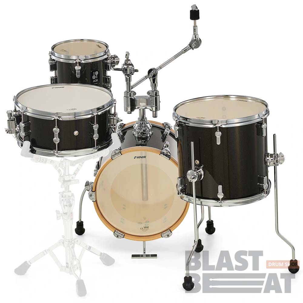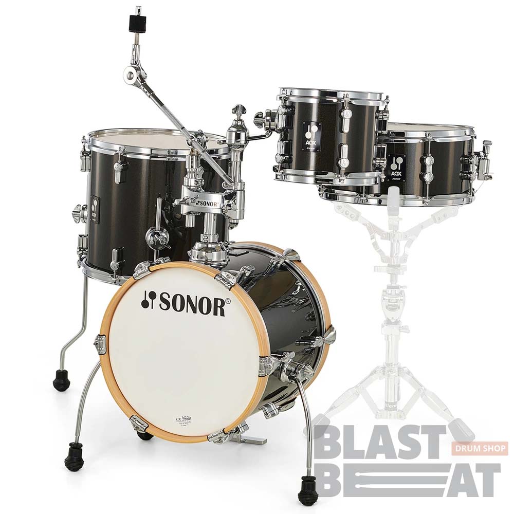 Супер-компактный комплект Micro Set небольших барабанов ударной установки SONOR новой серии 2021 года AQX в Black Midnight Sparkle расцветке.