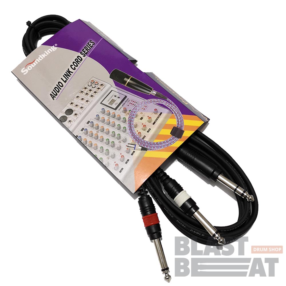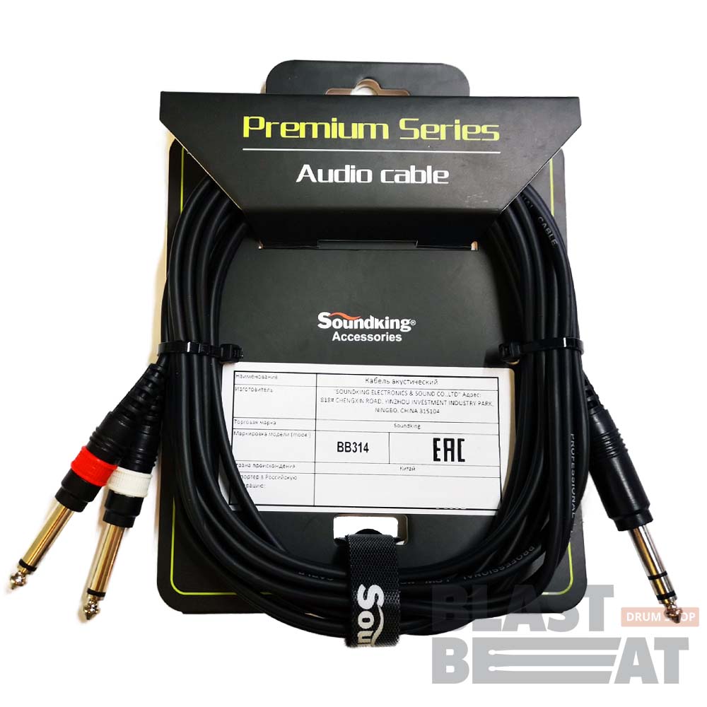 Акустический кабель со стерео джек-коннектором (6,35 мм) с одной стороны и двумя моно джек-коннекторами (6,35 мм) на другом конце Soundking BB314-3M.