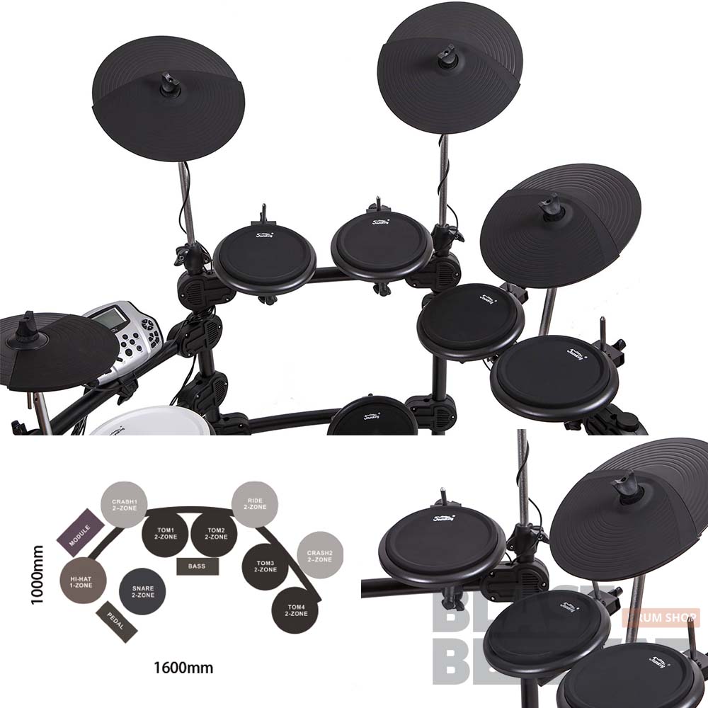 Пэд хай-хэта позволяет воспроизводить звучание полуоткрытых тарелок. Пэд малого барабана увеличен до 10 дюймов.