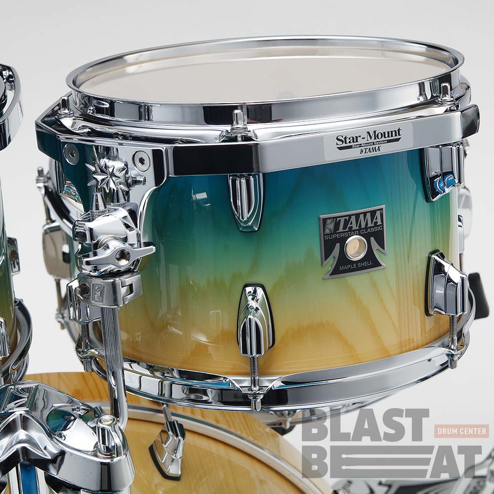 Эта ударная установка Tama Superstar Classic с привлекательной градиентной отделкой, состоящая из пяти элементов. Каждый корпус изготовлен из клена, что придаёт артикулированную теплоту, особенно когда он настроен на низкий или средний тон, а с точки зрения настройки уникальная система подвески томов Star-Mount является определенным бонусом, поскольку обод, уменьшающий контакт корпуса обеспечивает максимальный резонанс. Помимо 22-дюймовой бочки, этот комплект включает в себя 10-дюймовый том, 12-дюймовый том, 16-дюймовый напольный том, 14-дюймовый малый барабан.