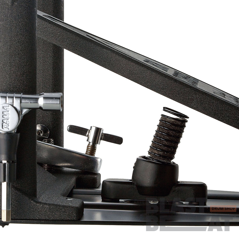 Педаль снабжена независимыми механизмами регулировки: можно отдельно настроить угол наклона колотушки (Vari-Pitch), положение футборда и натяжение цепи, что даёт широкие возможности кастомизации под стиль и технику барабанщика. Стальной зажим для крепления к обручу и опциональные шипы на ножках предотвращают скольжение педали.