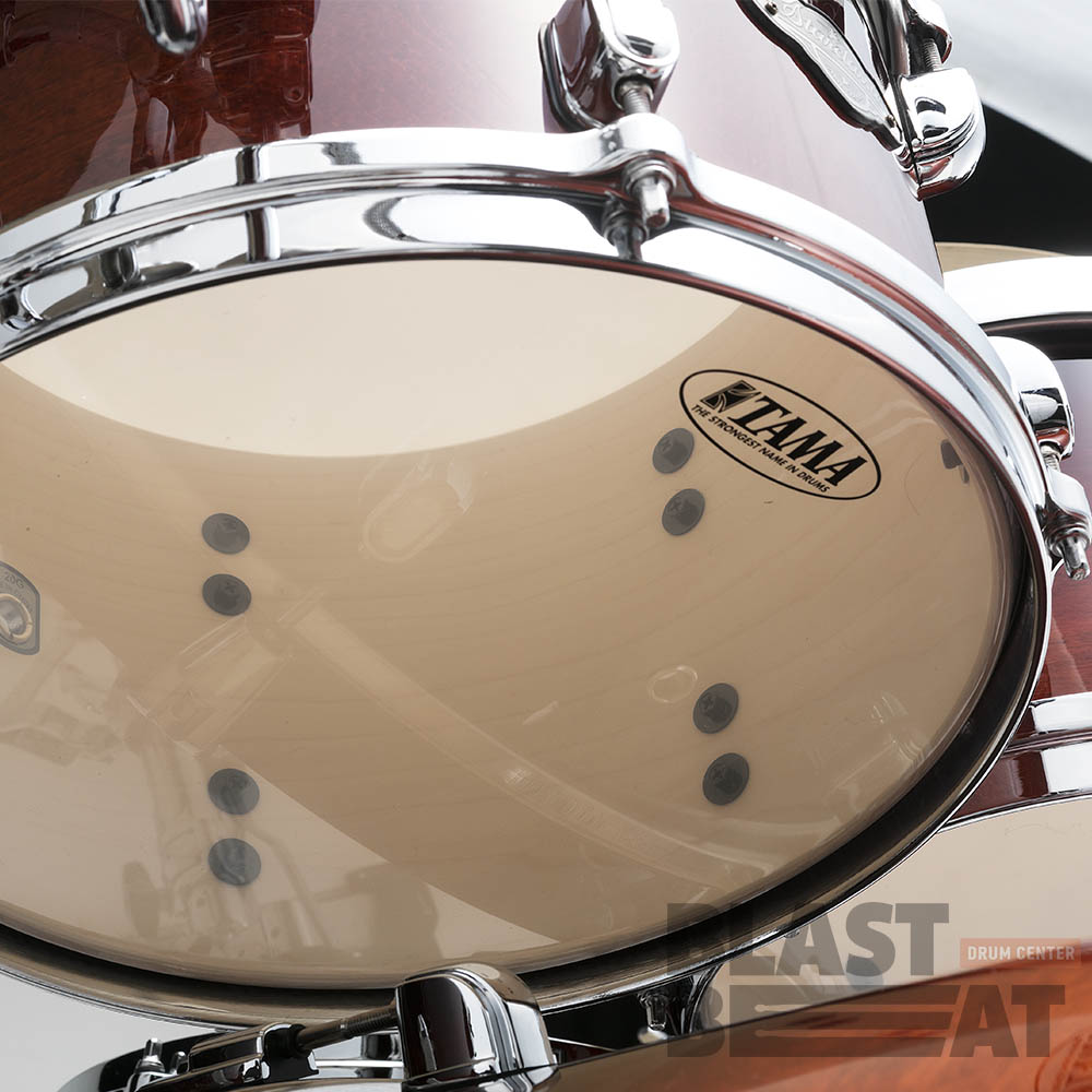 На томах установлены пластики EVANS G1 с покрытием и однослойные резонансные пластики Tama Power Craft II. Бас барабаны оснащены пластиками EVANS clear EQ4 и резонансными пластиками Tama с демпфирующим кольцом. Малые барабаны имеют пластики EVANS G1 с покрытием и резонансные Evans 300.