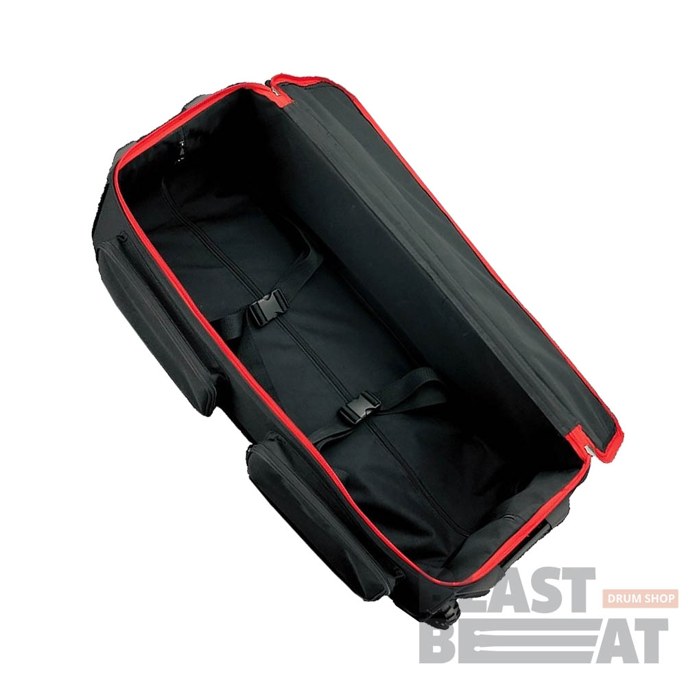 Для удобства переноски чехол оборудован надежной ручкой, а снизу имеются колёсики для того, чтобы облегчить транспортировку тяжелого заполненного чехла. Нижняя поверхность чехла усилена ударопрочным пластиком, что позволяет размещать чехол вертикально. Чехол влагостойкий, внутри предусмотрено мягкое покрытие, защищающее стойки от возможных механических повреждений и царапин.