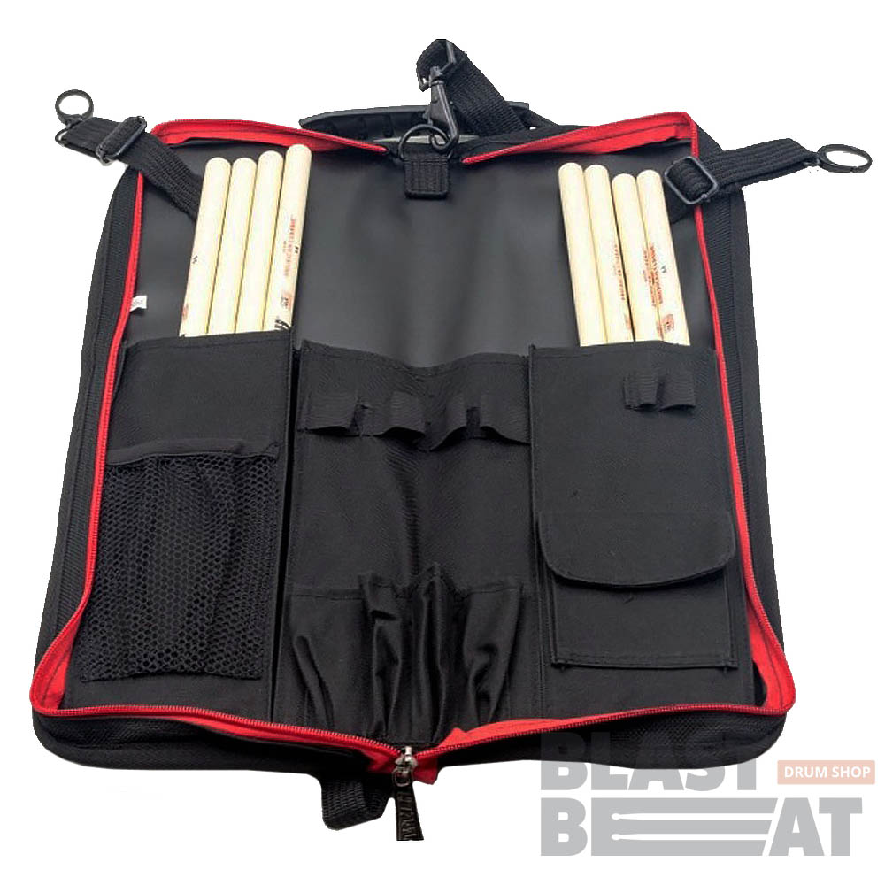 - Внутри чехла есть специальные карманы для размещения двух пар палочек, сделанные таким образом, чтобы новые палочки было легко вытащить во время игры.