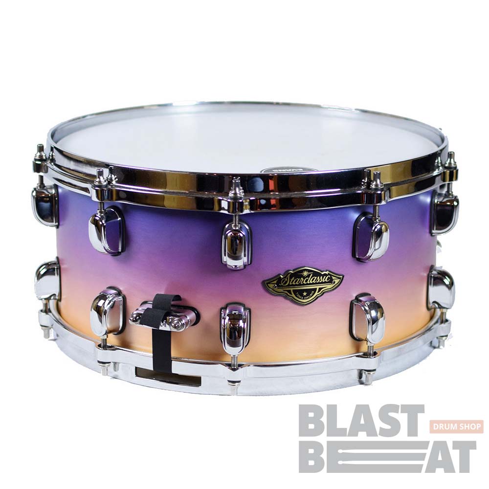 Гибридный малый барабан Tama 14 на 6,5 дюймов серии Starclassic Walnut/Birch в расцветке Satin Purple Atmosphere Fade (WBRS65-SAF).