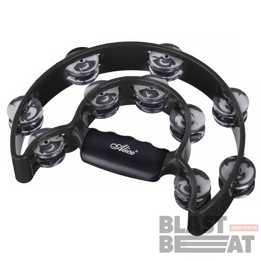 Пластиковый ручной тамбурин в форме полумесяца с 20 парами джинглов (бубенцов) и эргономичной ручкой Alice ATB002 Halfmoon Double-Ring Tambourine.