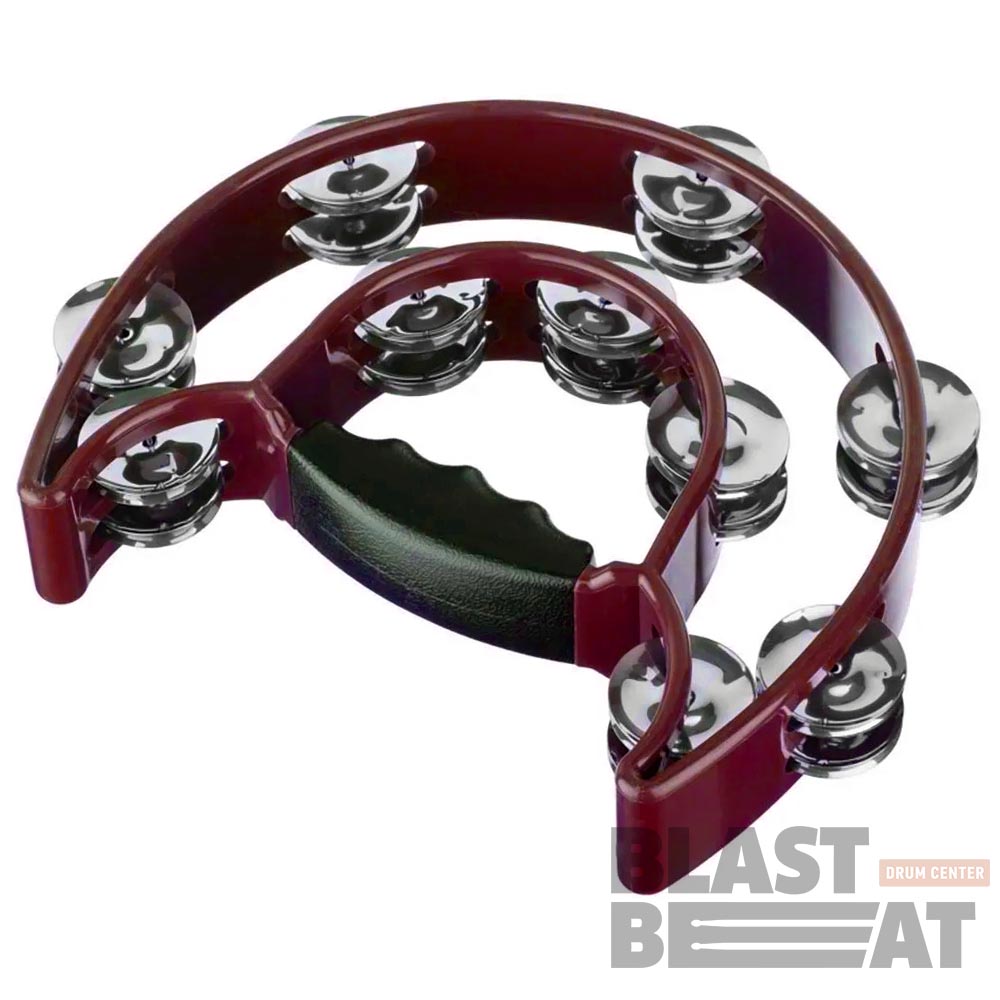 Пластиковый ручной тамбурин в форме полумесяца с 20 парами джинглов (бубенцов) и эргономичной ручкой Alice ATB002A Halfmoon Double-Ring Tambourine (90º Handle).