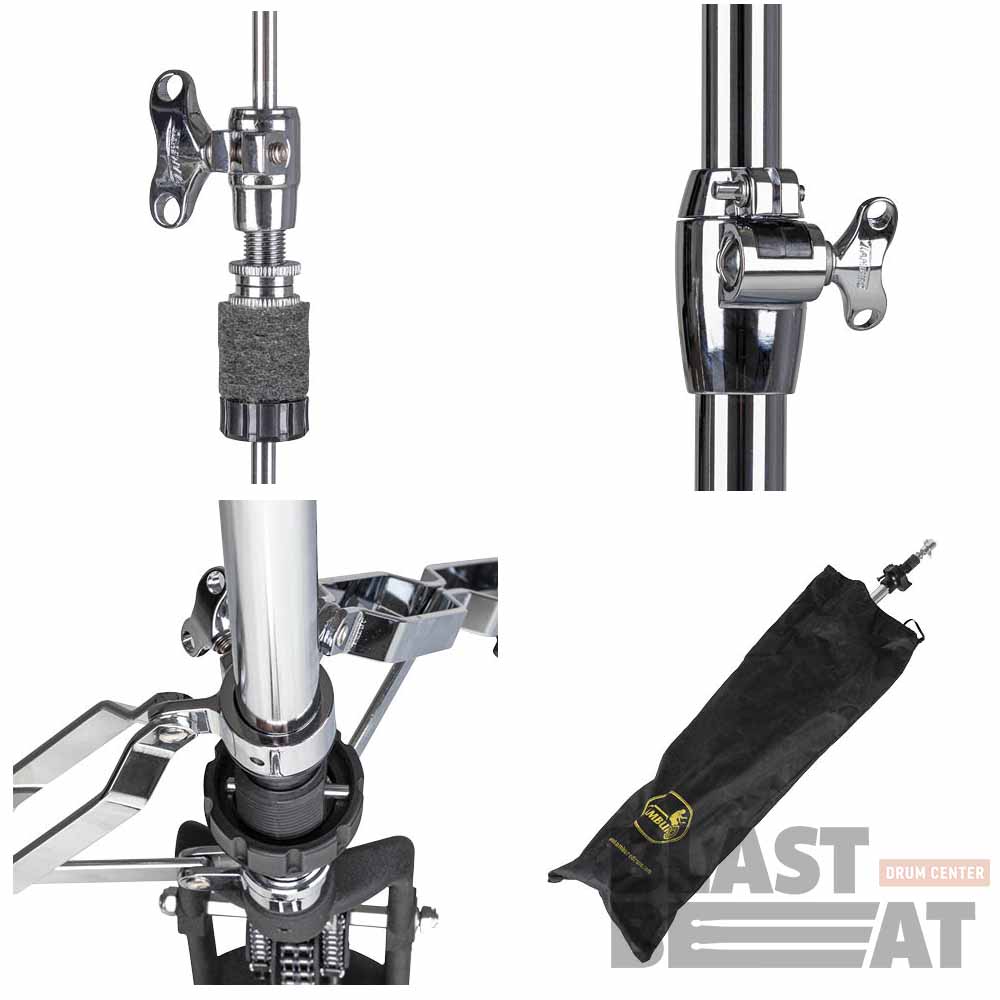 Профессиональная поворотная стойка на двух ногах для тарелок хай-хэт из серии 600 с регулировкой пружины с помощью резьбового кольца от итальянской компании Tamburo.