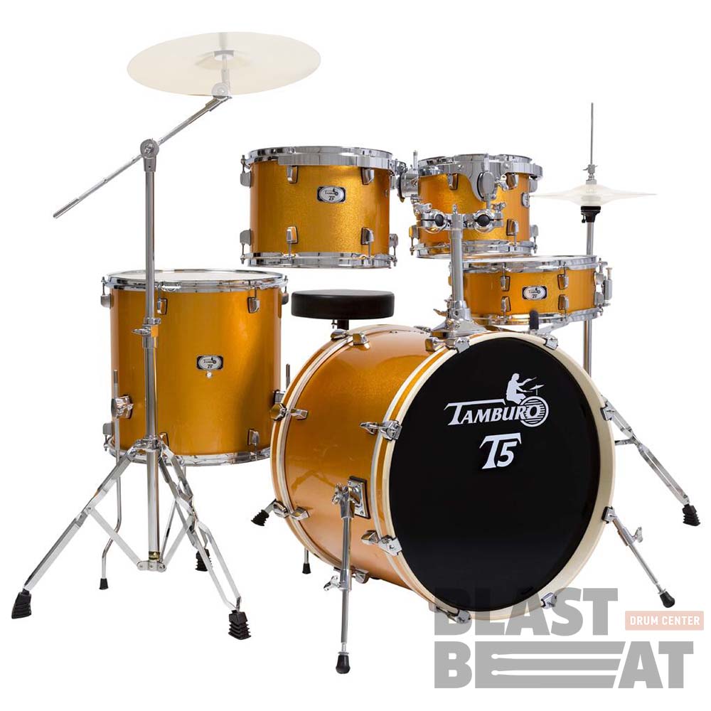 Полный комплект барабанов со стойками, педалью и стулом TAMBURO T5 - это качественные акустические установки начального уровня с итальянским дизайном.