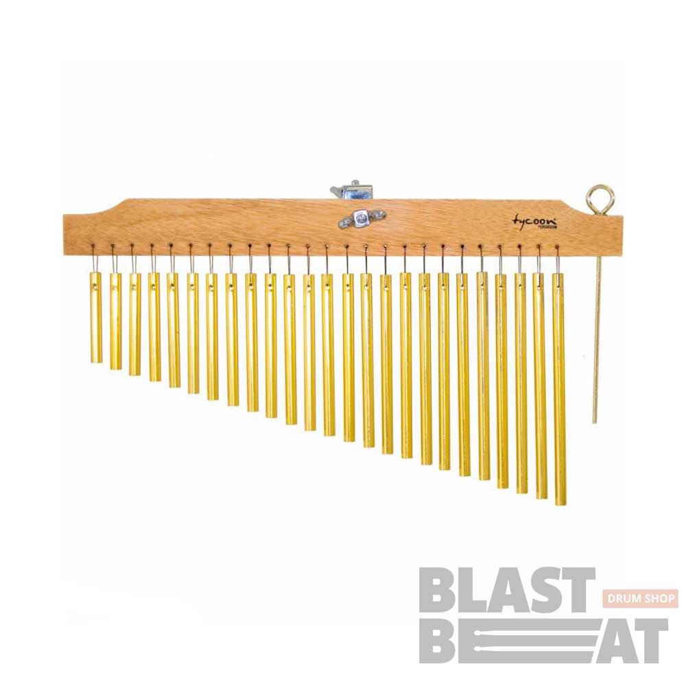 Бар чаймс на 25 колокольчиков (нот) из алюминия Tycoon Percussion 25 Gold Chimes With Natural Finish Wood Bar.