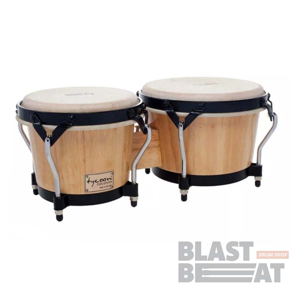 Пара барабанов бонго натурального цвета размера 7" и 8.5" от Tycoon Percussion, изготовленные из сиамского дуба. Барабаны оборудованы натуральными мембранами из кожи буйвола, стальной фурнитурой и имеют специальные нескользящие ножки с резиновыми накладками.