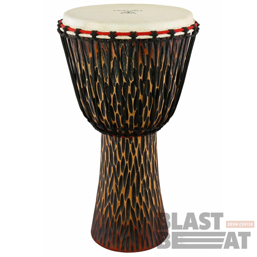 Африканский барабан джембе с верёвочным креплением (натяжением) мембраны серии Supremo Select TAJ-10CO с рисунком Chiseled Orange (Оранжевые проточки).