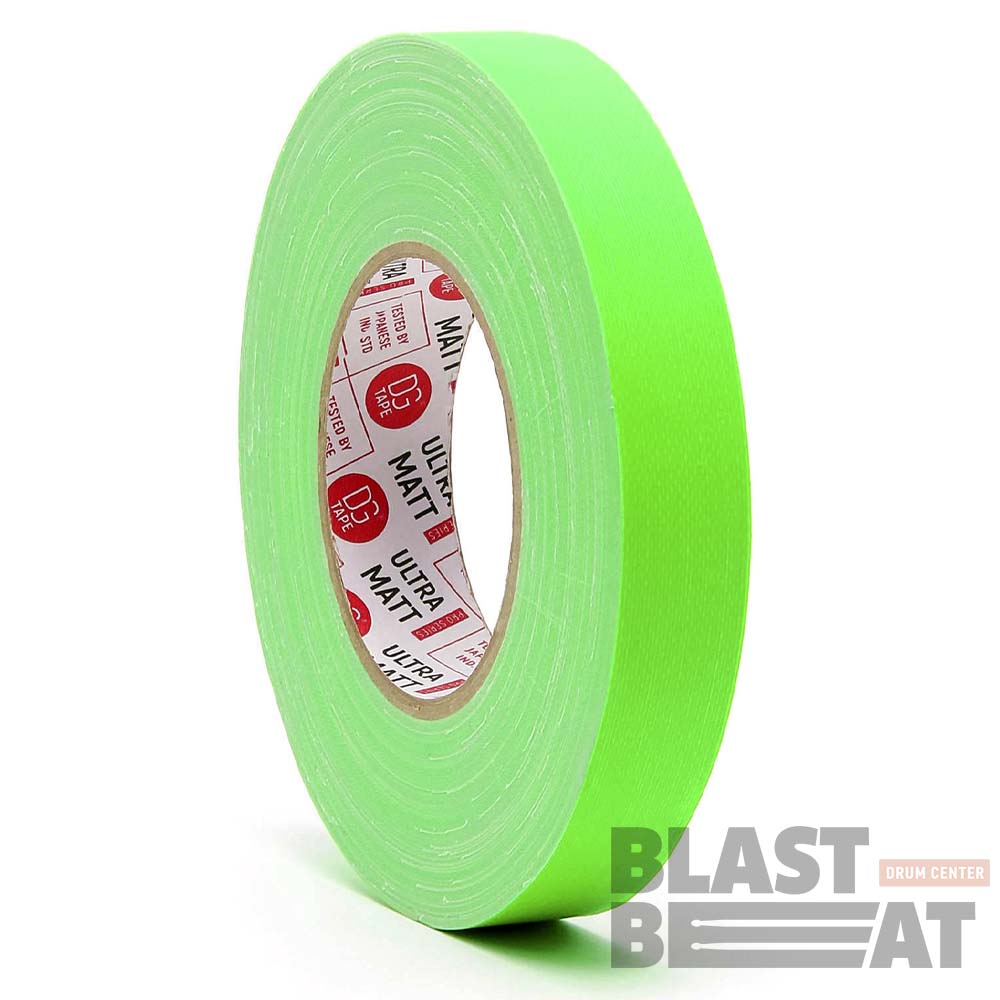 Плотность 76 mesh. Зелёная клейкая лента тэйп (тканевый скотч) с эффектом свечения в темноте (ультрафиолете) шириной 25 мм в рулоне 50 метров DG Tape серии Flourescent UltraMatt Flour.