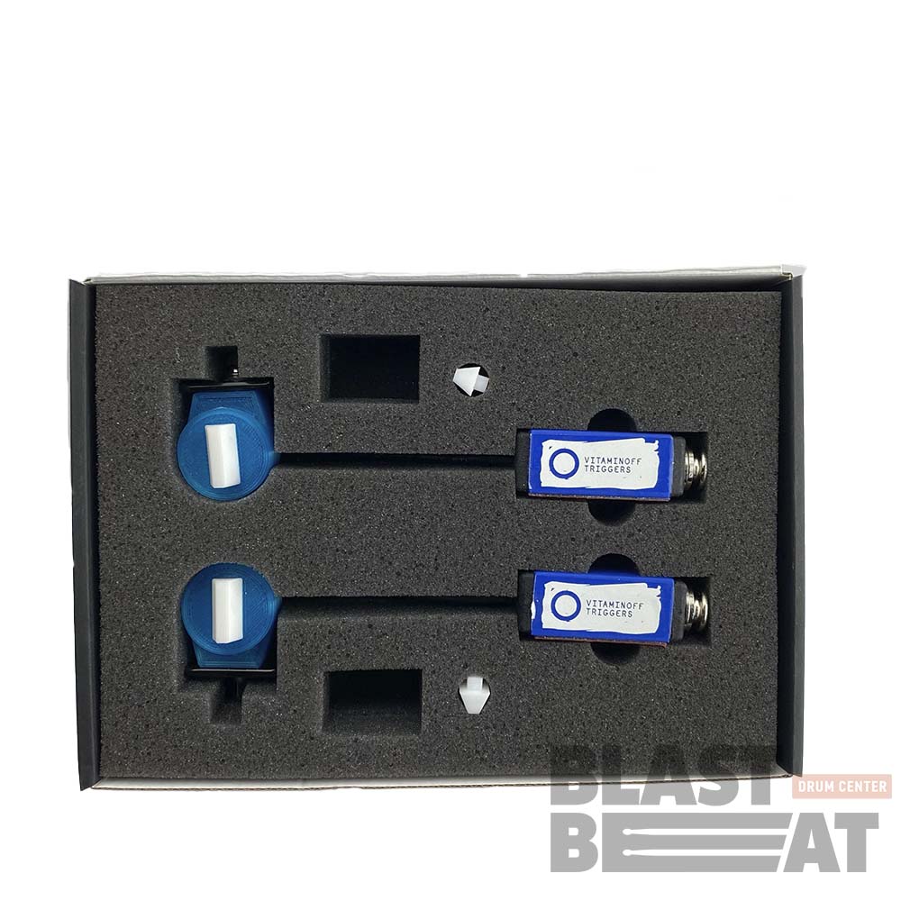 Комплект синих пьезо-триггеров с креплением под футборды педалей бас-барабана от российского VitaminOFF Triggers