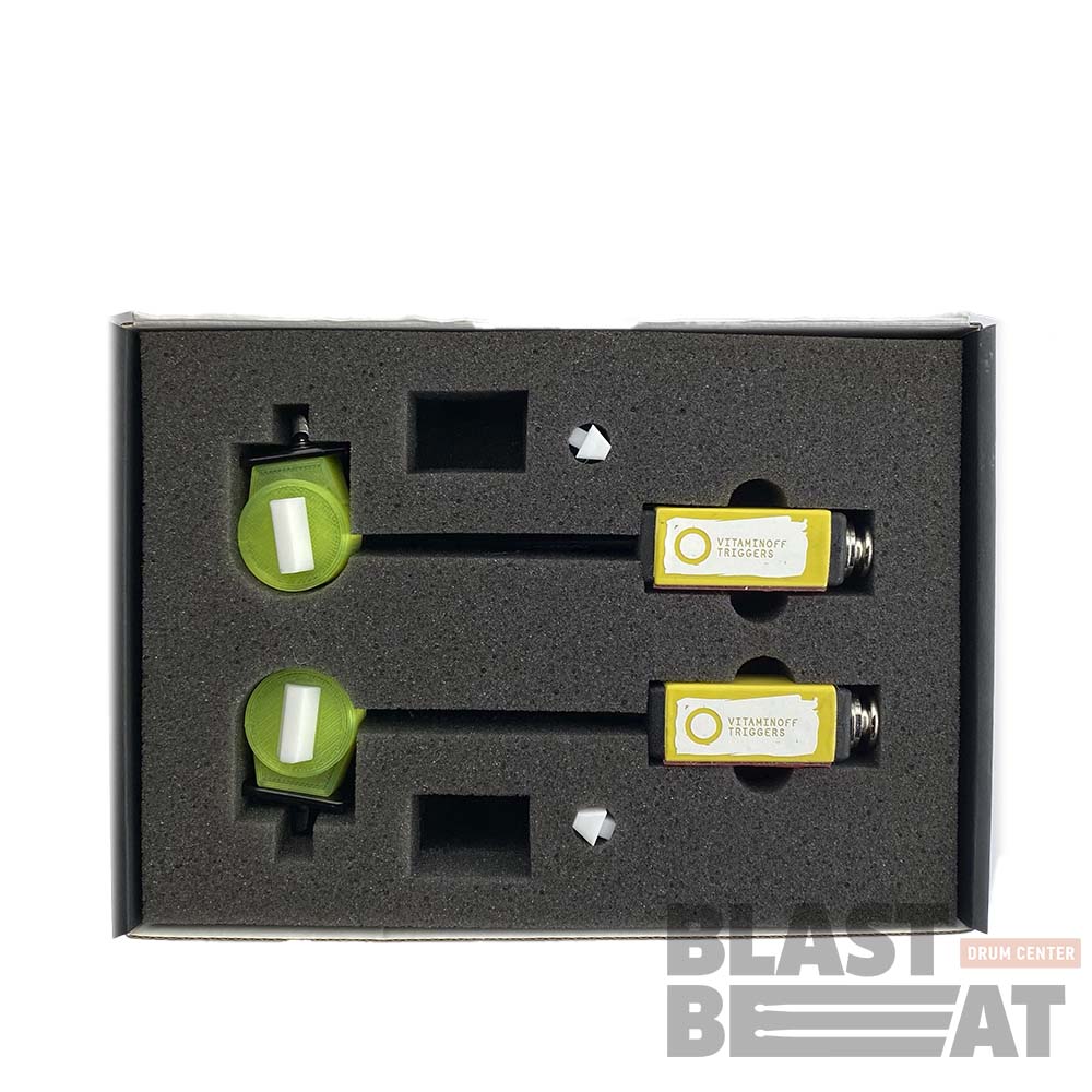 Комплект жёлтых пьезо-триггеров с креплением под футборды педалей бас-барабана от российского VitaminOFF Triggers