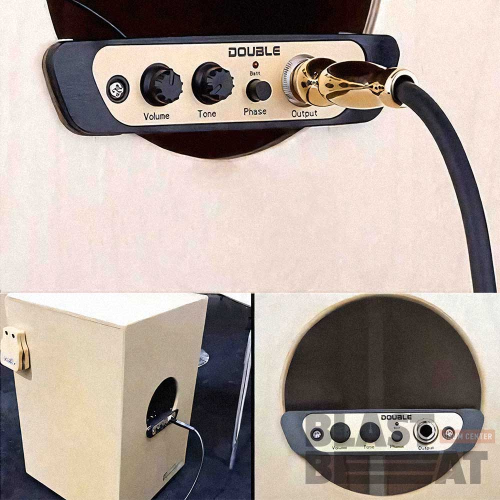 Cajon Preamp с микрофонным звукоснимателем plug and play (вставь и играй) и встроенным аккумулятором. Простая установка в звуковое отверстие, регулятор громкости, функция регулировки тембра и фазового преобразования, баланс низких и высоких частот, контроль и предотвращение нежелательных шумов, индикатор низкого напряжения для источника питания.