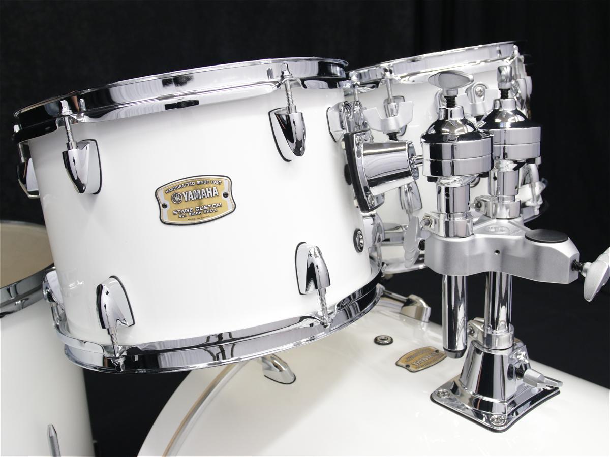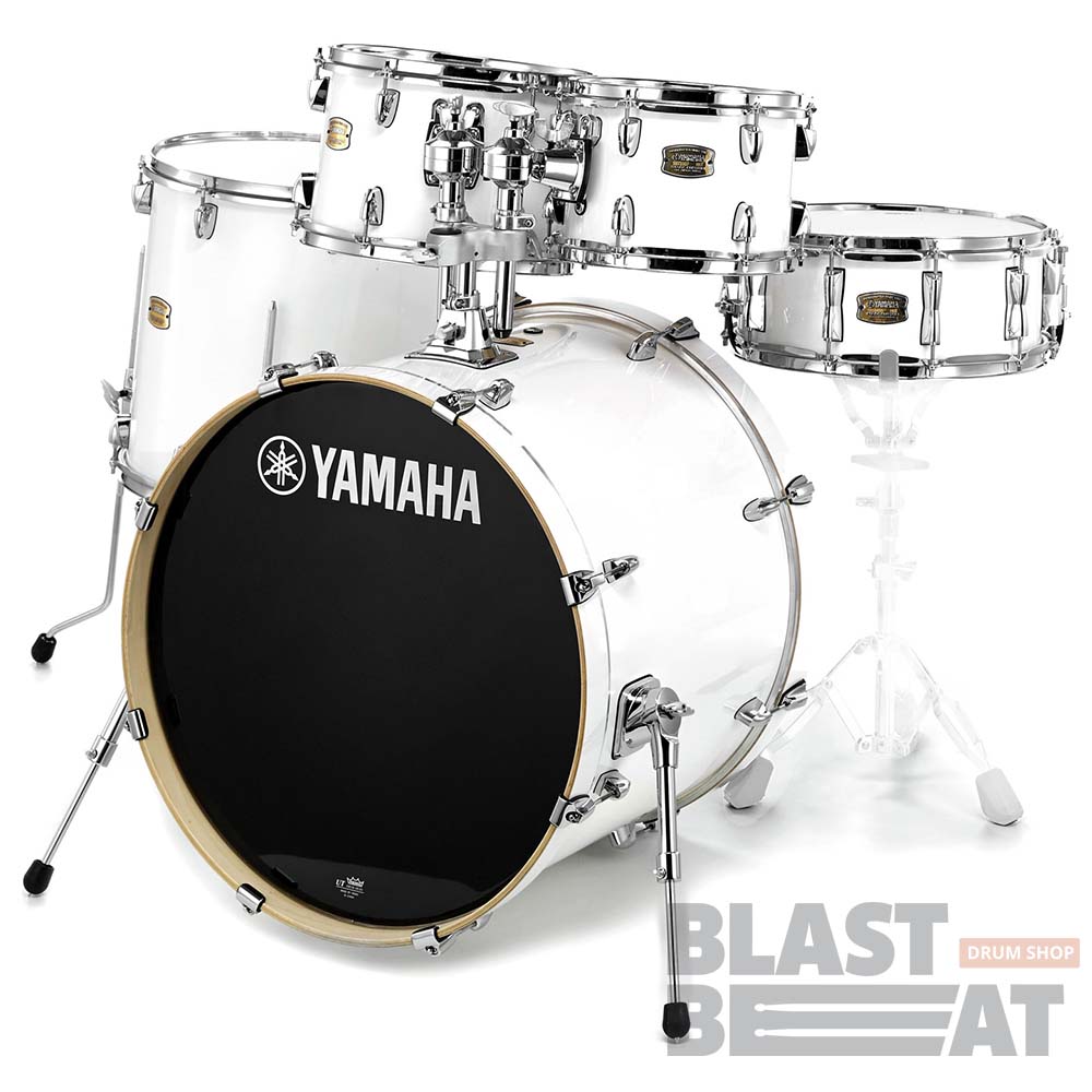 Барабанная установка серии Stage Custom Birch в стильном белом цвете Pure White от компании Yamaha.