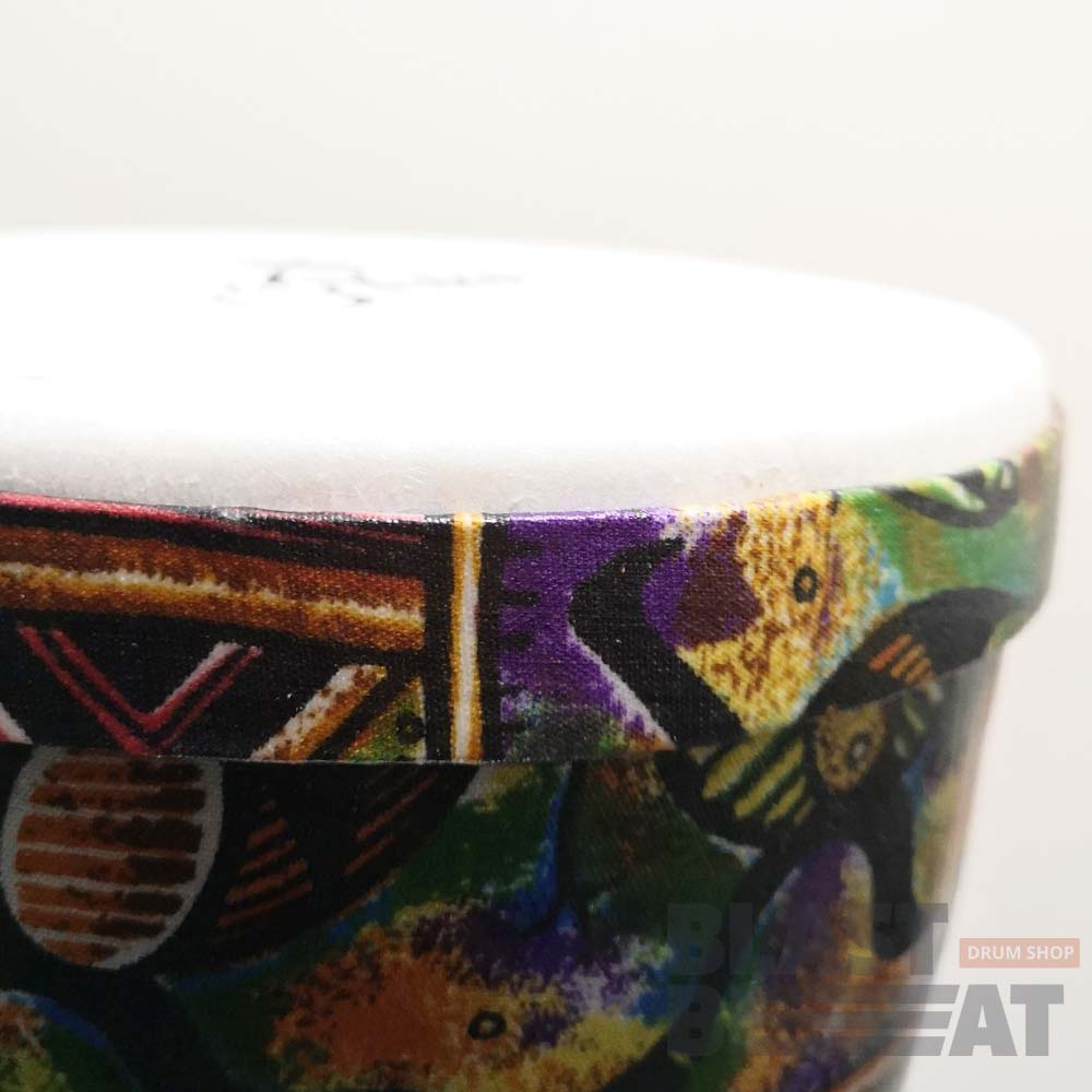 Мембрана барабана сделана из пластика, в связи с чем он имеет легкий вес и позволяет использовать барабан на улице, не боясь дождя и даже снега. Данная модель – идеальный походный вариант обладающий полным пространным звуком и легкостью конструкции. А яркий насыщенный цветом рисунок на корпусе, придает инструменту особый вид.