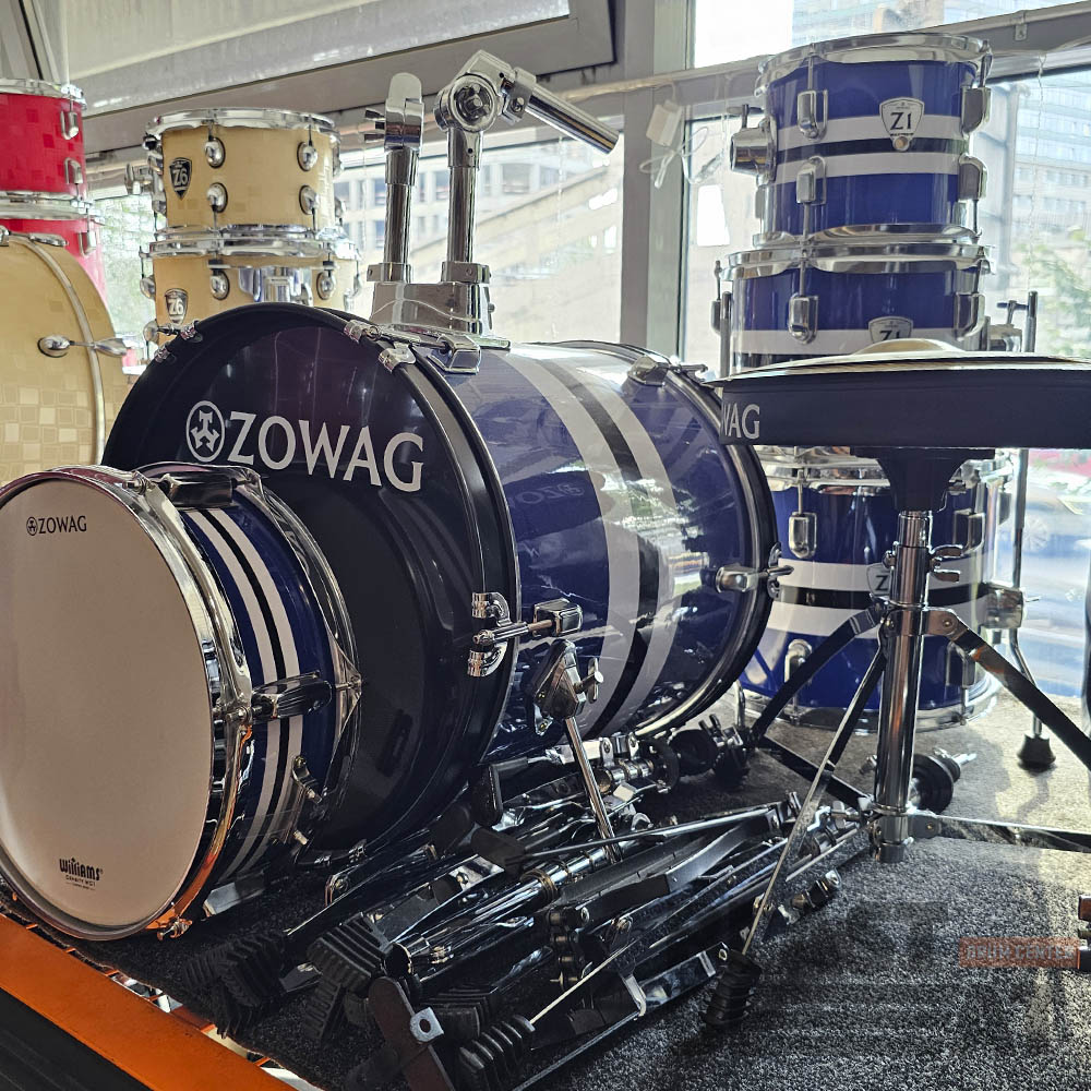 Выгодный и доступный комплект "Всё-в-одном"! Полный набор компактных барабанов ударной установки из тополя Z1 Junior синего цвета со стойками, стулом, тарелками и педалью от бренда Zowag Drums: