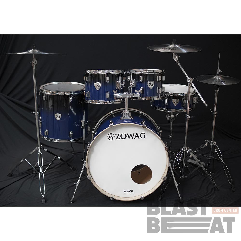 Полный комплект барабанов ударной установки Fusion из берёзы серии Z4 All Birch синего цвета Night Blue Party со стойками, стулом и педалью от бренда Zowag Drums: