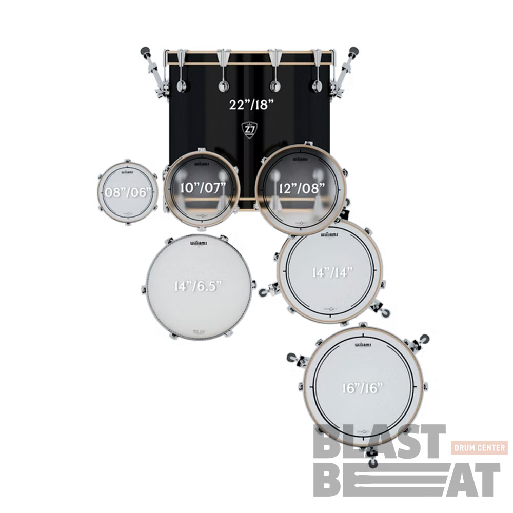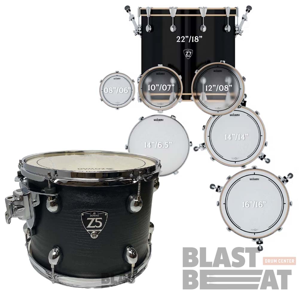 Расширенный шелл-пак комплект из 7 барабанов Modern Rock ударной установки из тополя серии Z5 черного древесного цвета Black Wood от бренда Zowag Drums: