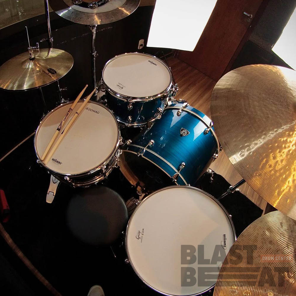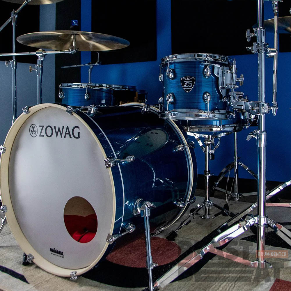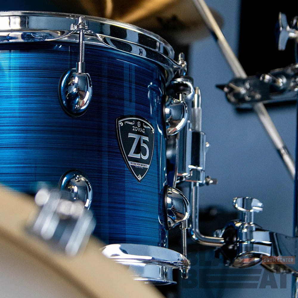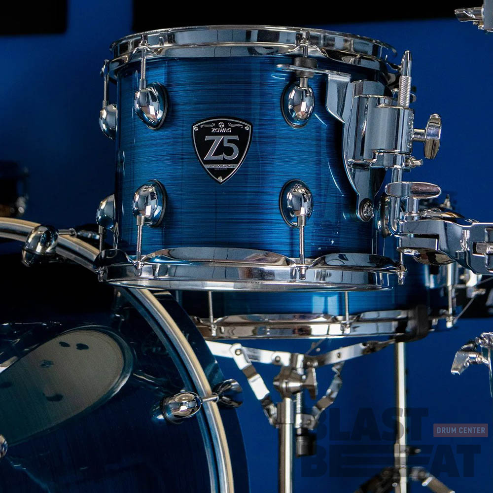 Расширенный комплект барабанов Rock ударной установки из премиального тополя серии Z5 синего цвета Blue Wire со стойками, тарелками, стулом и педалью от бренда Zowag Drums.