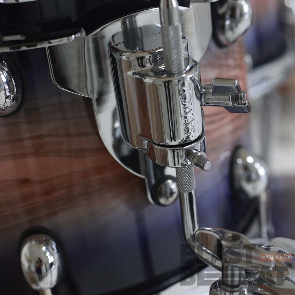 Расширенный шеллпак-комплект из 6 барабанов Rock Plus ударной установки из премиального тополя серии Z5 в расцветке черно-сине-древесного градиента Wood Blue Fade от бренда Zowag Drums.