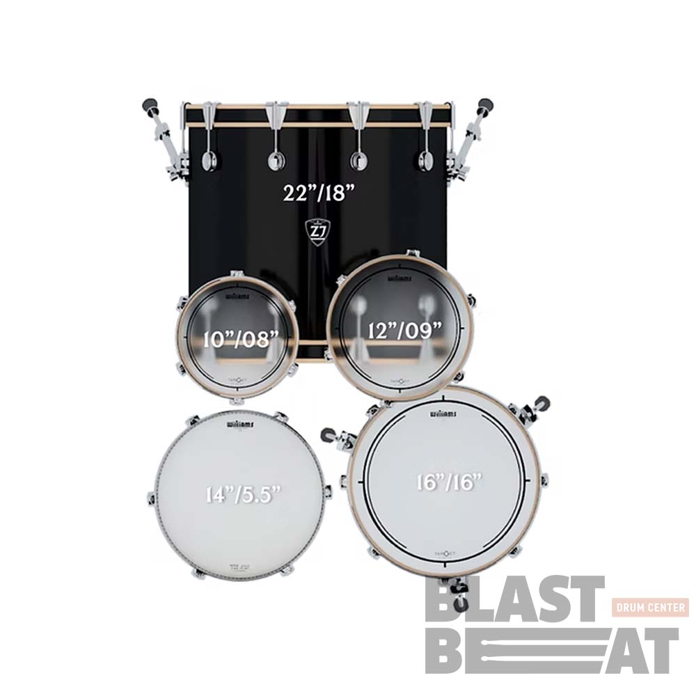Полный комплект барабанов Rock ударной установки из тополя серии Z5 Deluxe Poplar Shell черного цвета Black Wood со стойками, стулом и педалью от бренда Zowag Drums: